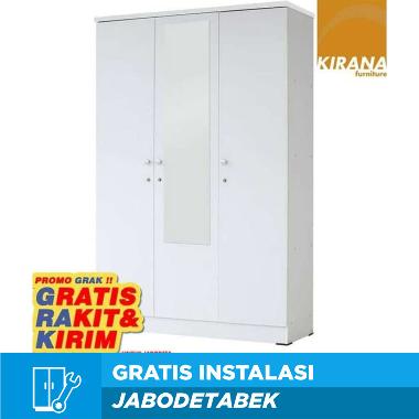 Harga lemari pakaian baju 3 pintu 3pintu hpl putih scandinavian minimalis.