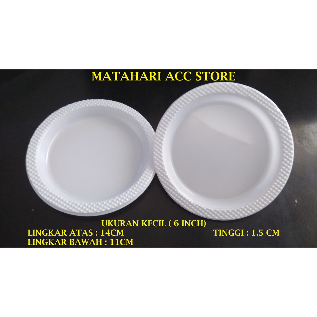 Piring plastik datar 6 inch, 7 inch, 9 inch acara perkawinan, acara ulang tahun, acara keluarga, acara kantor, acara meeting, acara kecil kecilan, food court,wisata kuliner Oleh karenanya banyak orang yang memilih rak piring ini. Piring makan selalu hadir dan setiap hari menemani apapun itu nasi dan lauknya yang berbeda. * p6 (panjang x lebar x tinggi) : Beli piring plastik kecil warna 6 inch.